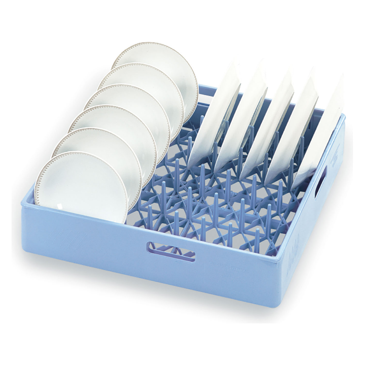 De diagonale handgrepen voor extra grip en het stapelbare design maken dat u uw vaatwerk veilig kunt transporteren en ergonomisch kunt opslaan. De dubbelwandige constructie garandeert de veiligheid van uw vaatwerk tijdens zowel wasprogramma’s als opslag. De Metos Vaatwaskorf is gemaakt van gespoten, gesmolten polypropyleen en geschikt voor alle type vaatmachines.