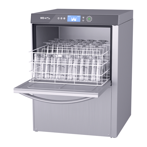 De vaatwasser is standaard voorzien van een ingebouwde breektank met drukverhoginspomp, zeeppomp, afvoerpomp en 1 glaskorf. De machine beschikt over 3 verschillende wastijden voor glas van 1.2, 1.2 en 2.2 minuten. Met een capaciteit van 50 korven per uur levert de WD 4 veel kostbare tijd op.
