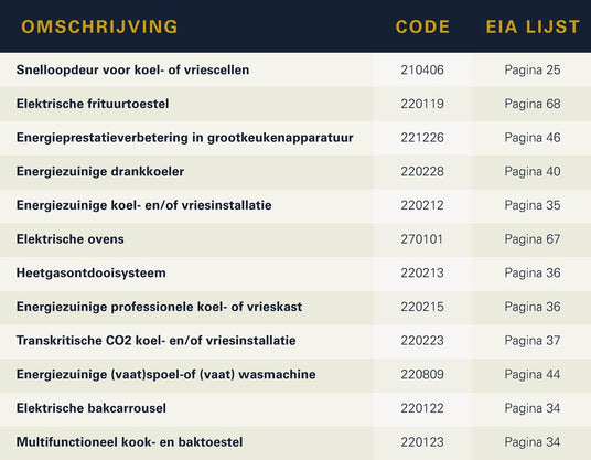- Het bedrijfsmiddel staat op de zogenoemde energielijst. Voor meer informatie kun je de brochure van het RVO lezen.