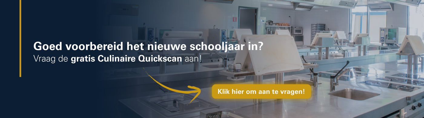 Wij helpen je graag om het nieuwe schooljaar sterk van start te gaan! Met de Culinaire Quickscan kijken we mee in je leskeuken of schoolkantine en geven we direct gratis advies over onder andere efficiëntie, duurzaamheid en hygiëne.